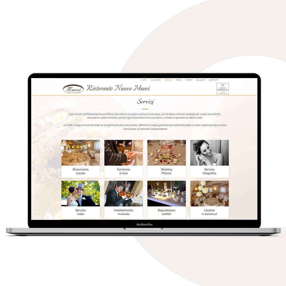 Sito internet responsive dal layout elegante, con sezioni complete su menù, servizi ed eventi. Un progetto che unisce estetica e usabilità per valorizzare il ristorante online