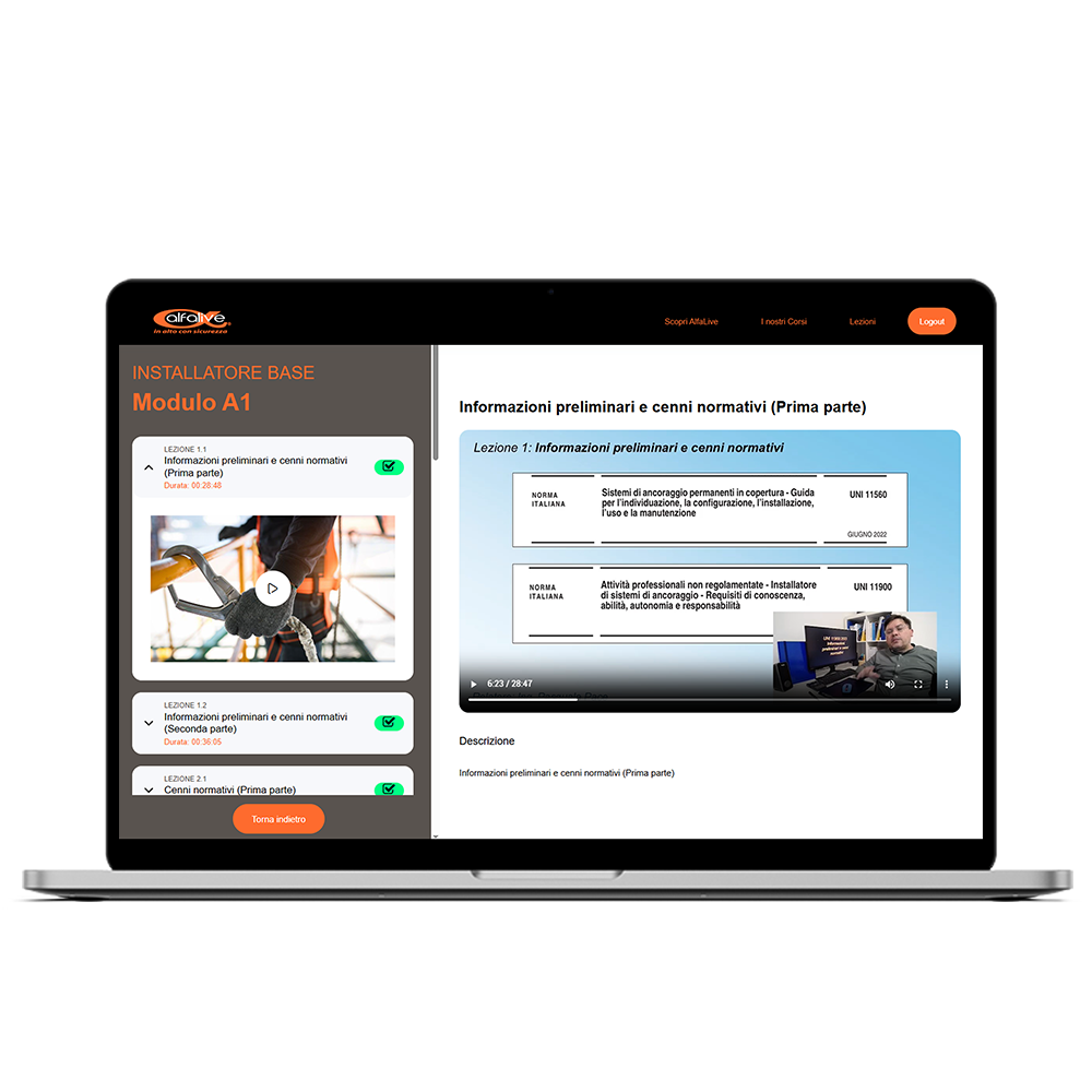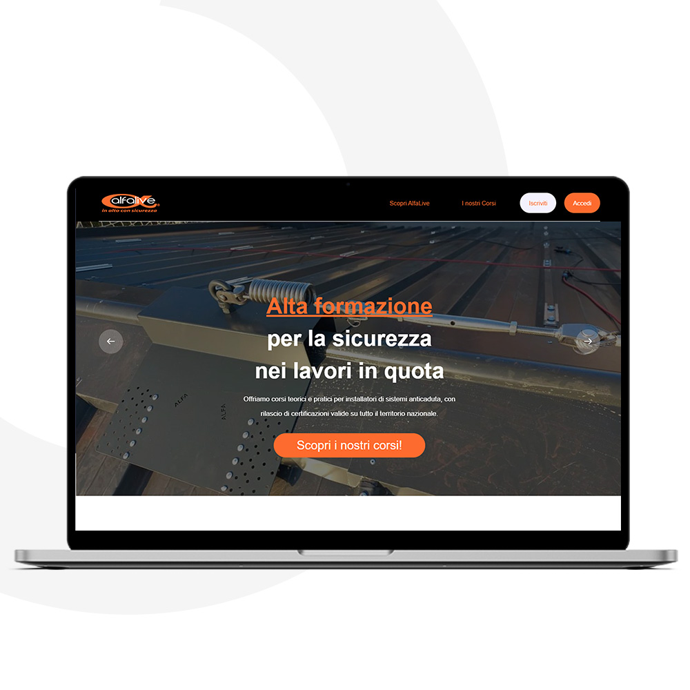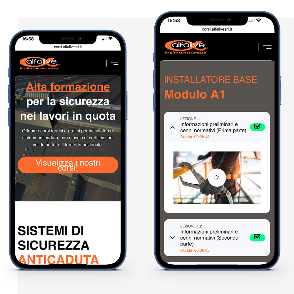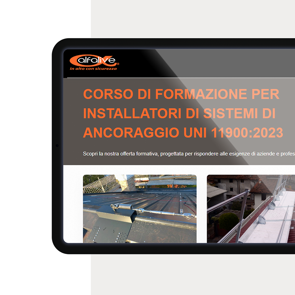 Abbiamo sviluppato la piattaforma e-learning per ALFALIVE, azienda italiana attiva dal 2009 nella progettazione e produzione di sistemi anticaduta certificati per la sicurezza nei lavori in quota.
