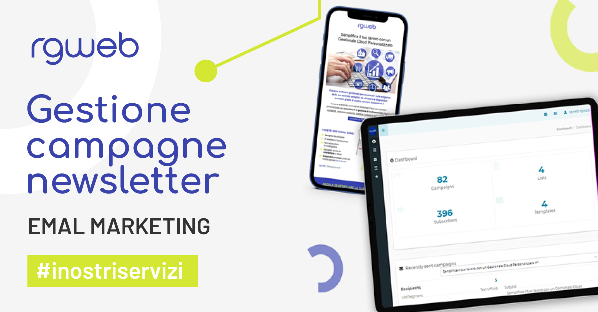 Studiamo insieme il layout grafico che avrà la tua newsletter, la periodicità di invio e la tipologie di contenuti da inserire. Grazie alla nostra piattaforma possiamo programmare l'invio delle tue newsletter in qualsiasi ora e giorno della settimana. Inoltre ti forniamo un report completo con tutte le statistiche: aperture, click, disiscrizioni, etc.