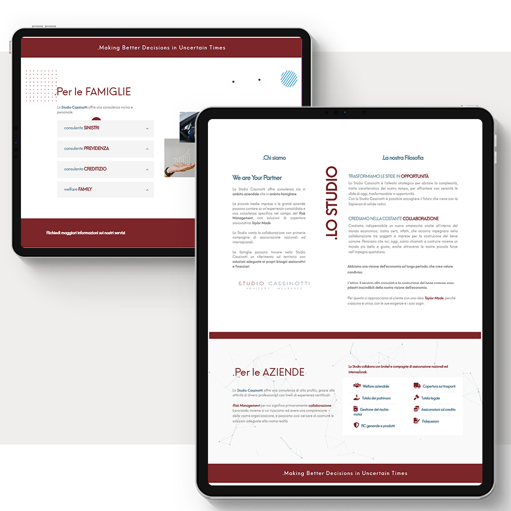 Sito web onepage, responsive e mobile first. Un sito completo per porre in evidenza tutti i servizi che lo Studio offre. Grafica pulita ed elegante che dà valore al contenuto.