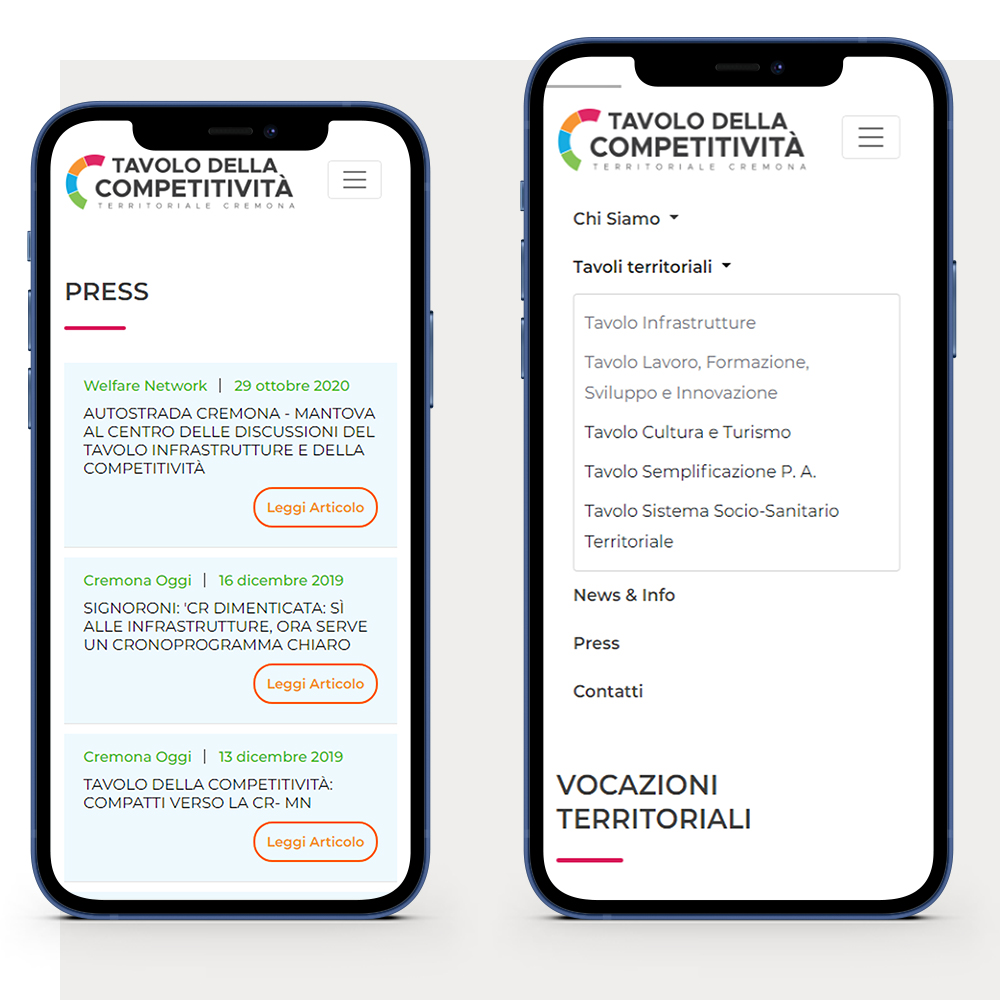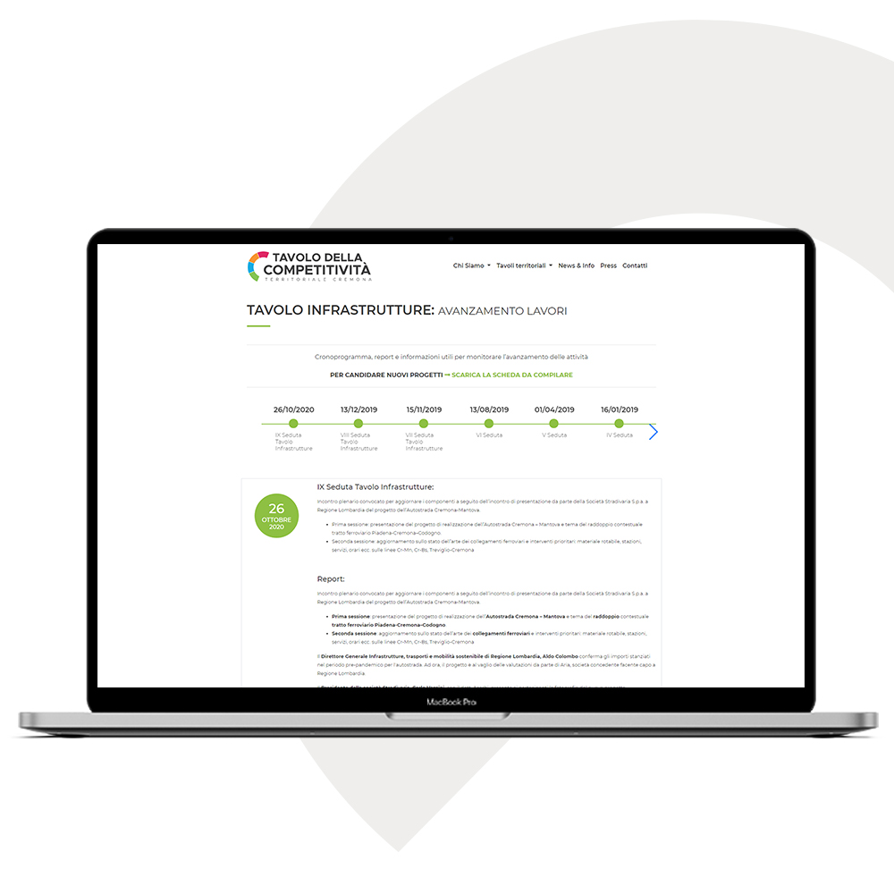 Gestione dei contenuti per le sezioni Avanzamento lavori, news e press area aggiornabili autonomamente attraverso un piattaforma dedicata.