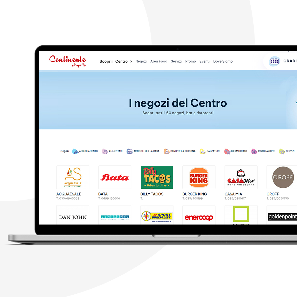 Abbiamo effettuato il restyling completo del sito web per il Centro Commerciale di Mapello, puntando su un design moderno, pulito e funzionale, che mette in risalto l’offerta del centro e migliora l’esperienza utente. Il sito è strutturato con sezioni dedicate per una navigazione intuitiva e fluida.