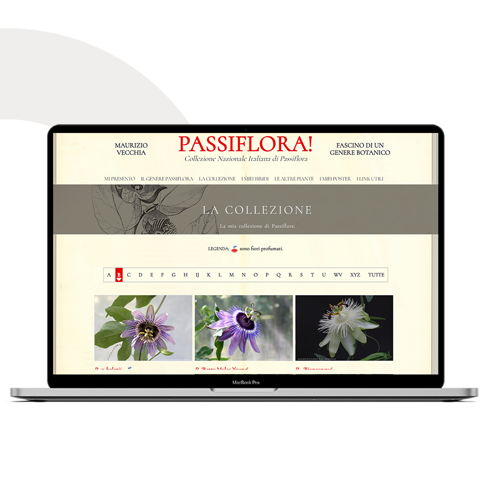 Restyling del portale Passiflora.it del Dott. Maurizio Vecchia, creatore dell'unica collezione Italiana di Passiflore (Collezione nazionale) riconosciuta dalla Società Botanica Italiana.